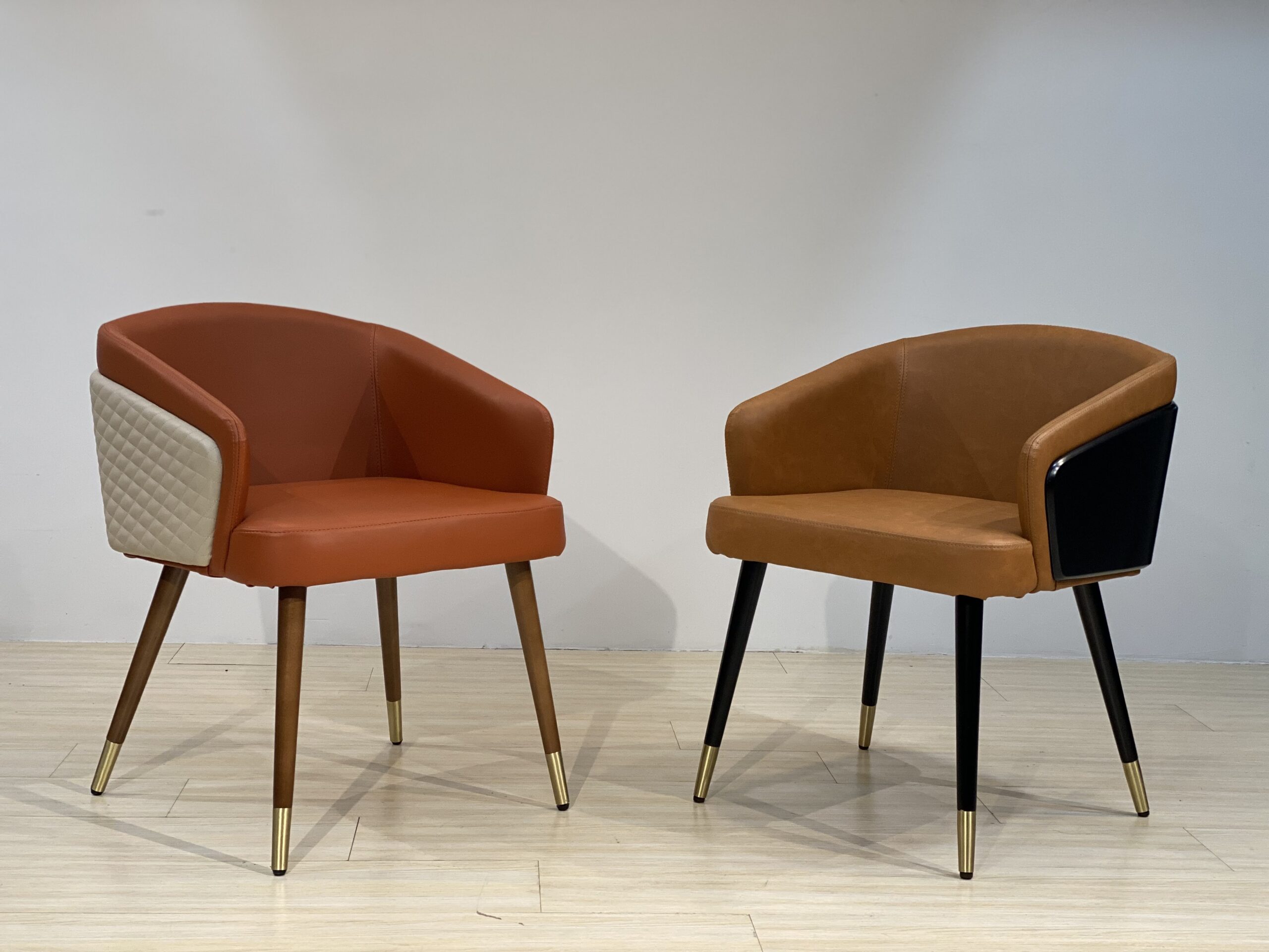 • Leather Upholstered Seat: The chair features a plush, high-density foam seat with top-grain leather upholstery, offering ultimate comfort and a luxurious look. The orange and brown color options add a touch of warmth to any space.